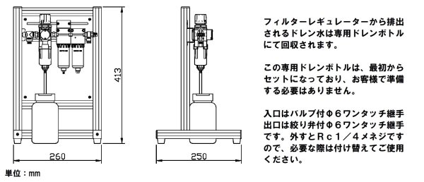 ※入口のボールバルブ/出口の絞り弁は取り外すことができます。取り外すとRc1/4メネジになります。