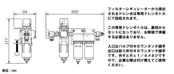 ※入口のボールバルブ/出口の絞り弁は取り外すことができます。取り外すとRc1/4メネジになります。
